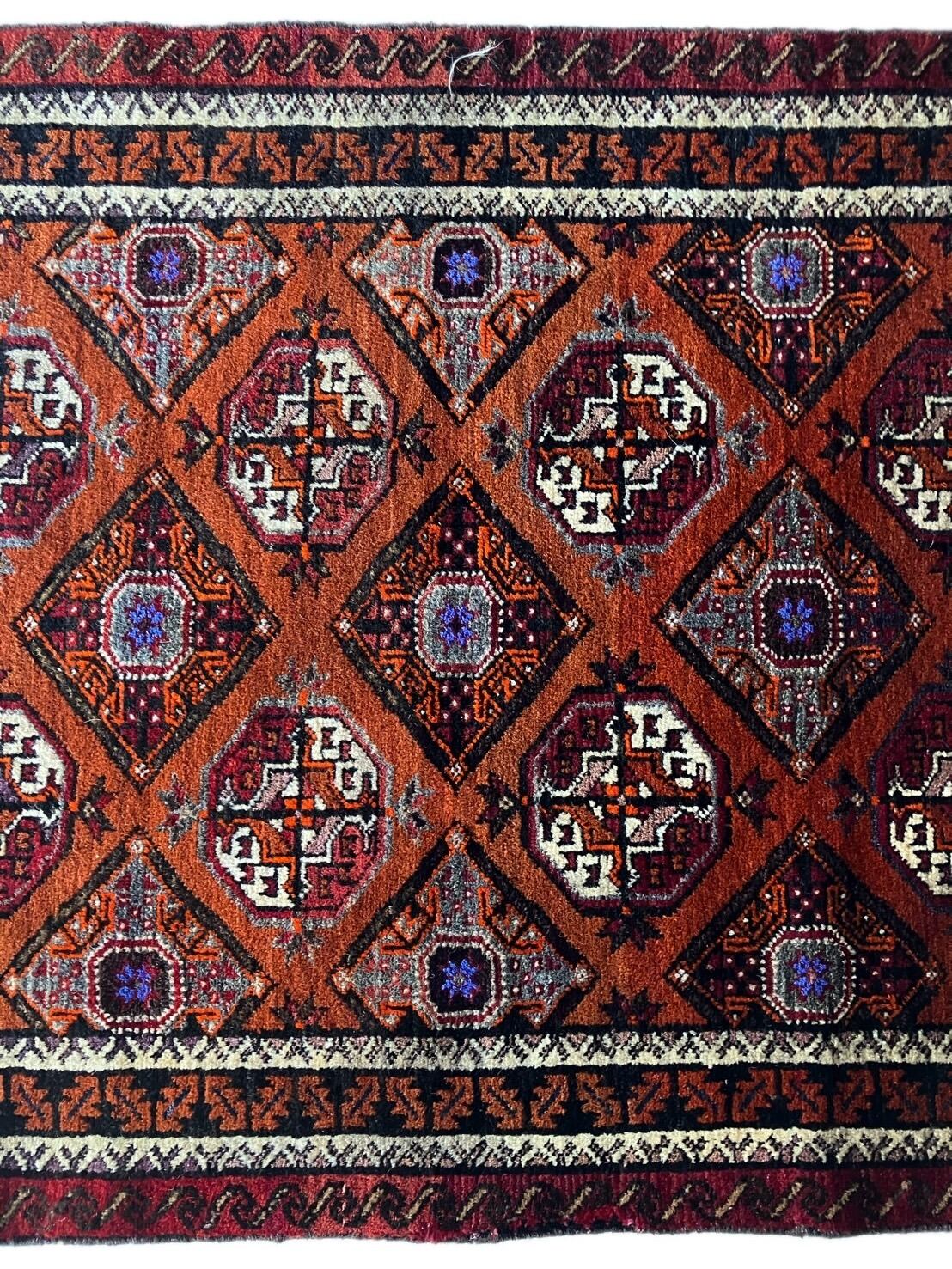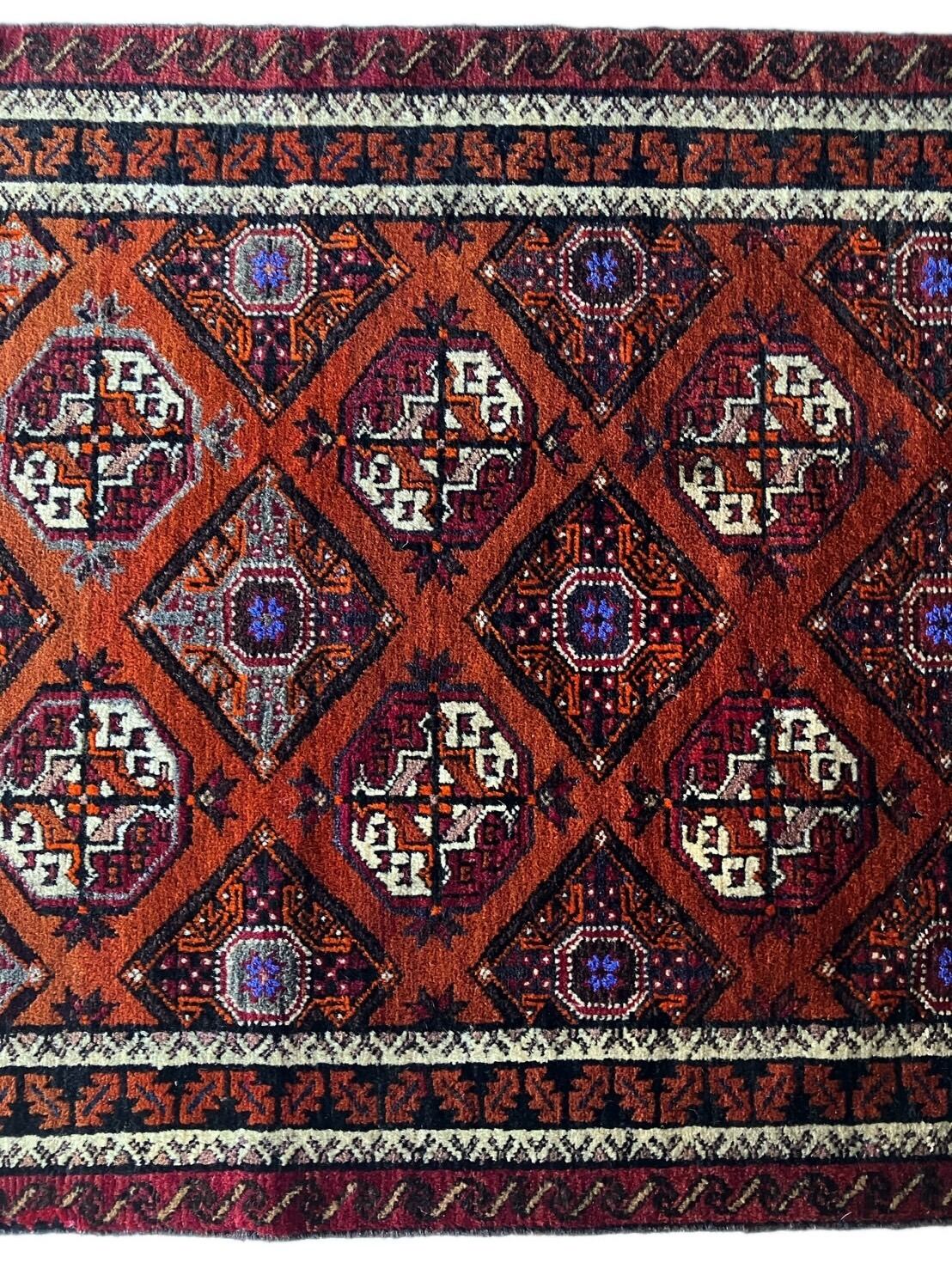 ジャムシーディー族のバルーチ絨毯です。トルクメンの柄を模倣しておりいて、織りが細かく、良質な絨毯です。