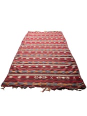 アフガンのウズベクの特徴的なキリムでガジャリーと呼ばれています。帯を繋いで作られています。