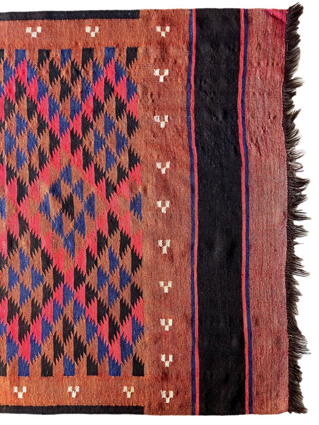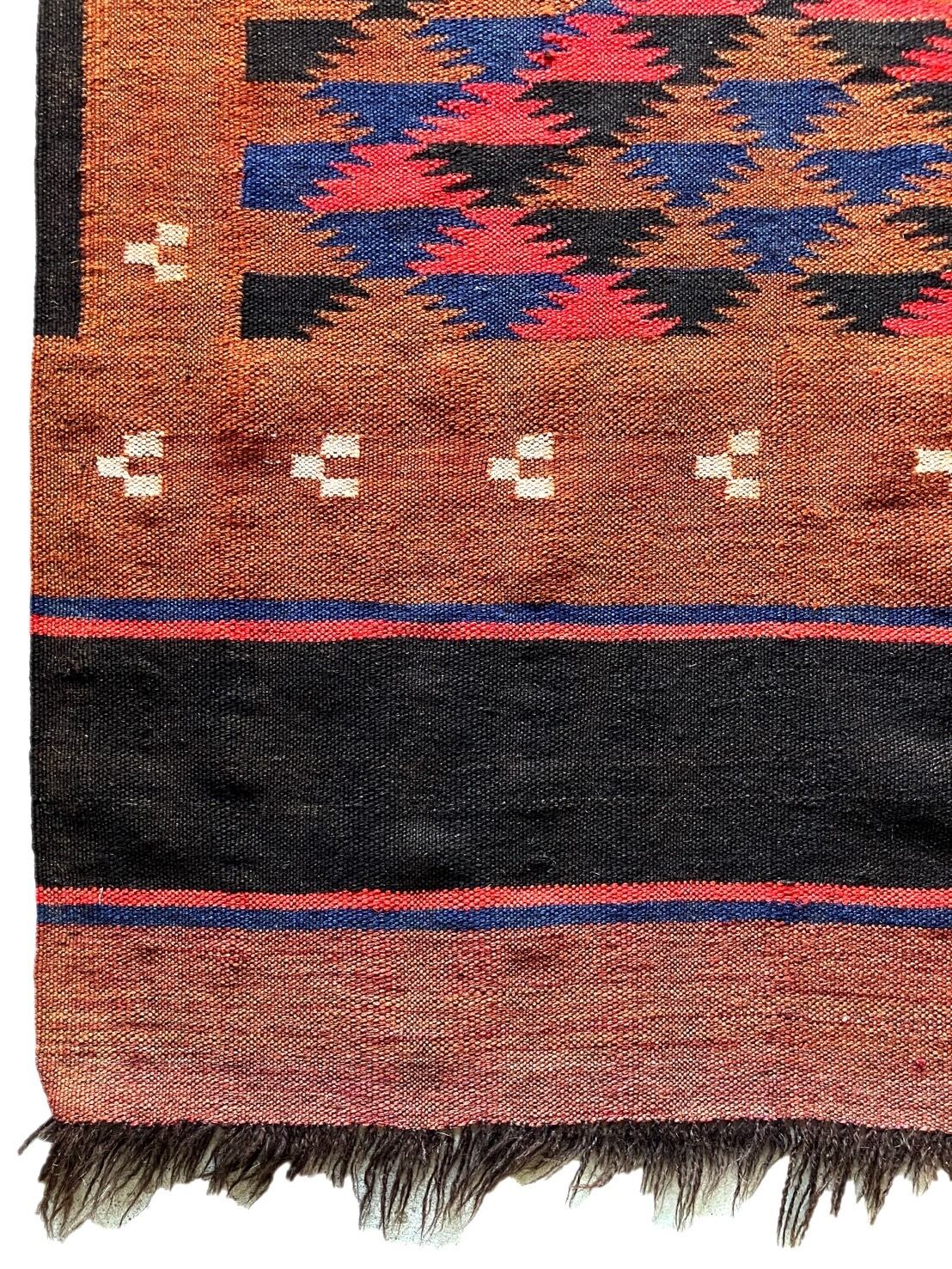 サリプールのポプラの葉の柄のハザラキリムです。織り、羊毛共に良質なハザラウールを使用して作られています。緩めに織られている感じからバーミヤン南部のBehsud(ベへスード)で織られたもので、正確にはサリプールではなくカブールに集荷されたハザラのキリムです。