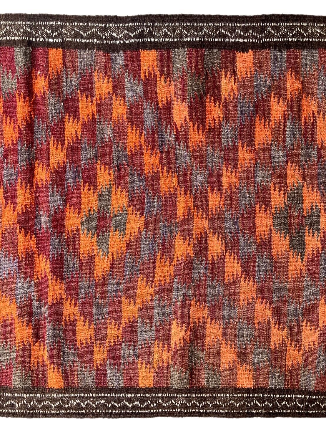 サリプールの特徴的な織りで、しっかりとしたポプラ柄のモチーフでダイアモンド柄に織ったハザラキリムです。ボーダーのダイアモンド柄もサリプールの特徴です。