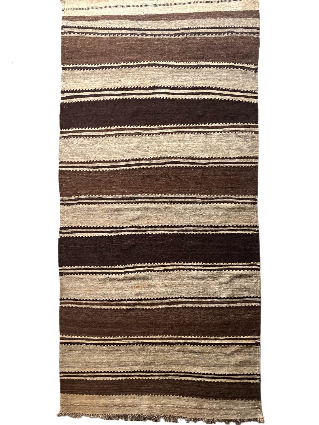 地毛色の羊毛のみを使ったシンプルなボーダー柄のバルーチキリムです。