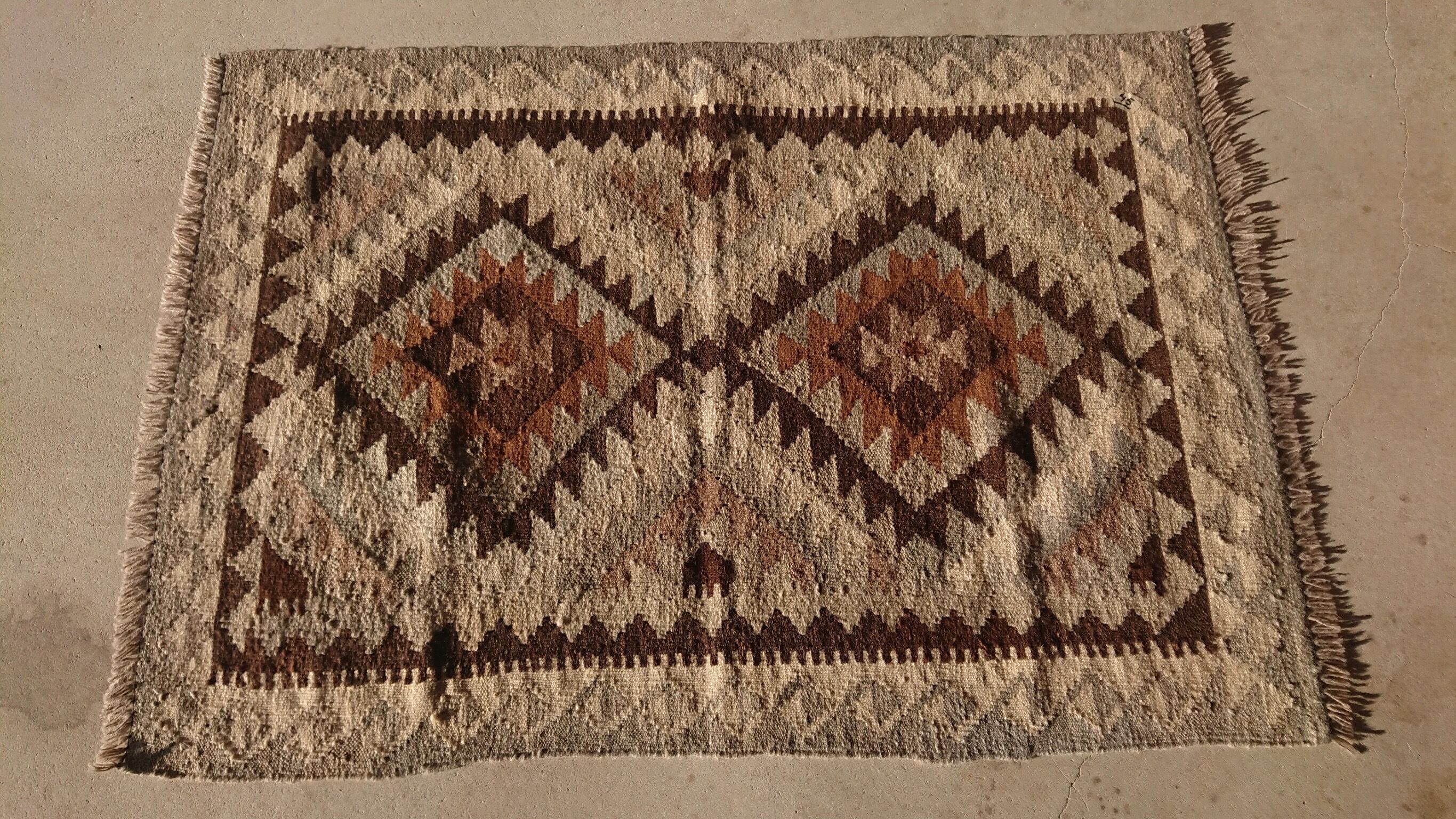 昔ながらの地毛色の羊毛で織られた新しいマイマナキリムです。