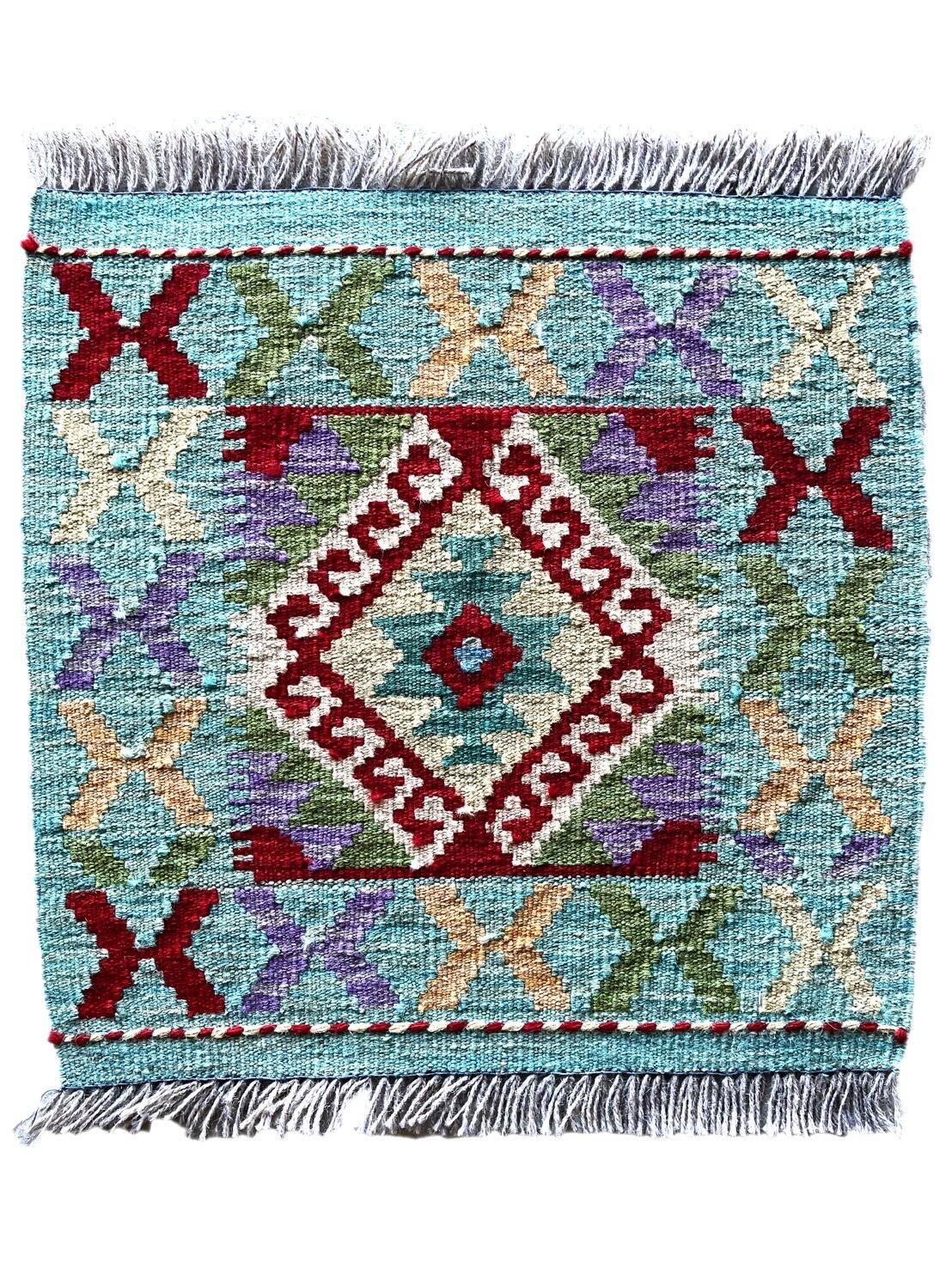 マイマナキリムの最近織られたものです。元来落ち着いた色目のものばかりでしたが、最近の糸の色ムラを使い、トルコキリムの様な色目の糸で織ったものです。ギャッベのどの絨毯で良くみられ、アブラッシュと呼ばれています。